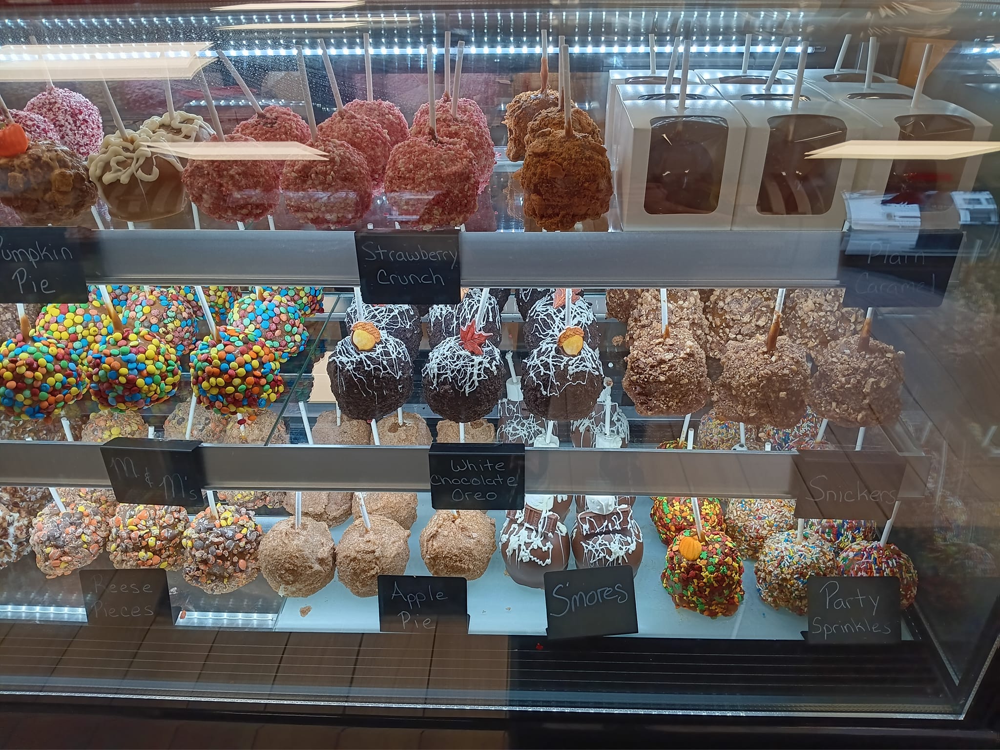 | Apple Flavor | Blue Candy, Buckeye, Caramel with peanuts, Crunch Coat, Heath, M&M, Oreo, Plain Caramel, Red Candy, Reese Cup, Snickers, Strawberry Crunch, Turtle |